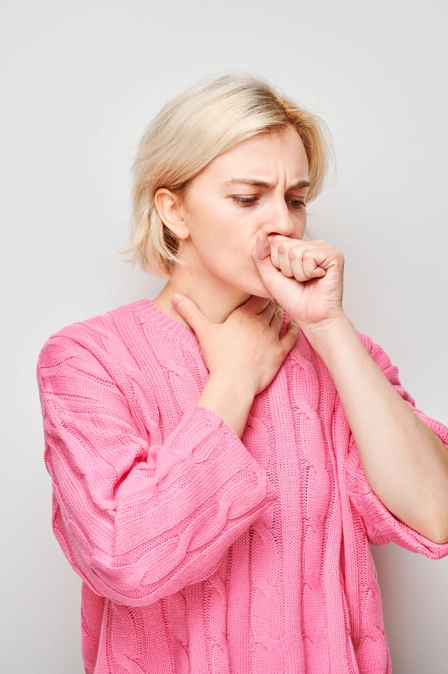 • Кашель: длительный и упорный, обычно усиливающийся по утрам и в ночное время. Кашель сухой или продуктивный, с выделением мокроты.